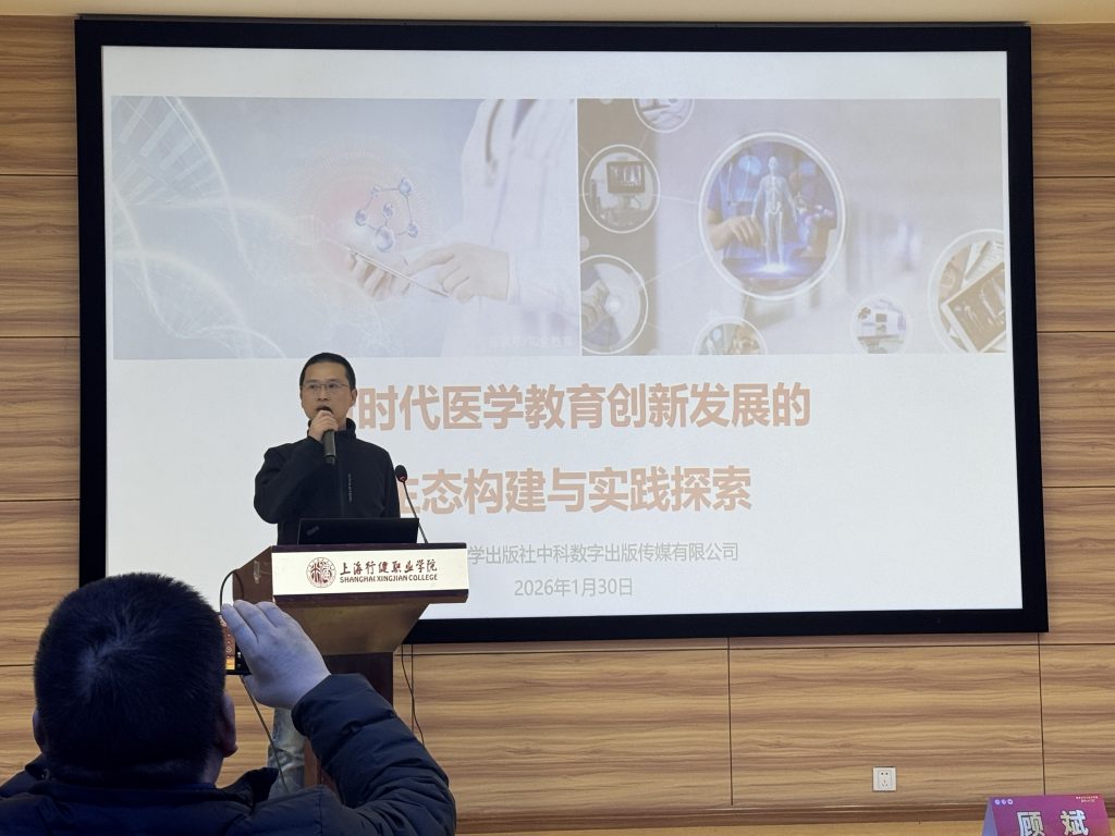 2026年1月30日下午,由上海市医学会教育技术专科分会主办的“2025年上海市医学会教育技术专科分会学术年会”在上海行健职业学院顺利召开,本次年会以“教育技术与医学科普融合与创新”为主题,中科数字出版传媒有限公司(以下简称“中科数媒”)受邀参会并作专题报告。长三角智慧医疗发展联盟、上海交通大学医学院、同济大学、海军军医大学、上海健康医学院、上海行健职业学院、上海中医药大学附属龙华医院、同济大学附属上海市第四人民医院等机构的专家学者齐聚一堂,共赴此次学术盛会。